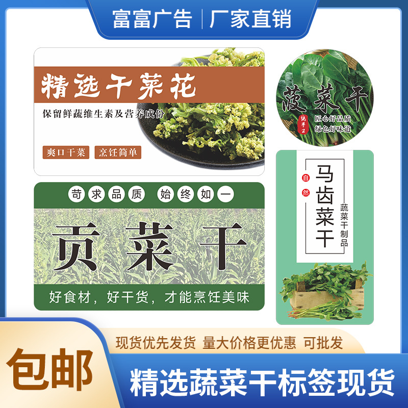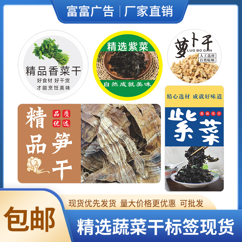 精選野菜乾ラベル銅版紙不乾性精品香菜乾精選海苔大根乾野菜乾