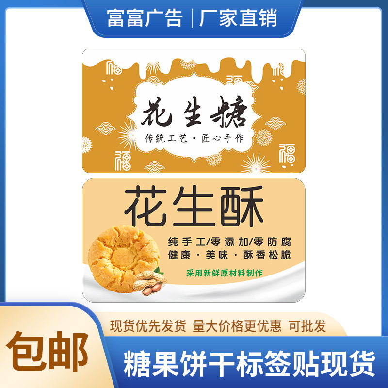 シール不乾性伝統菓子焙煎食品キャンディクッキーピーナッツクルミショートニング銅版紙現物