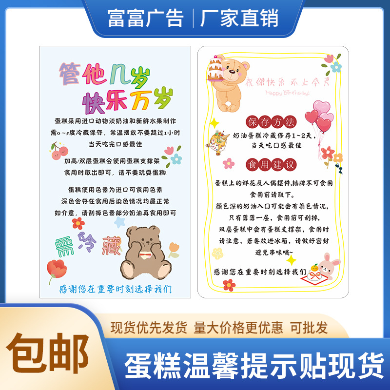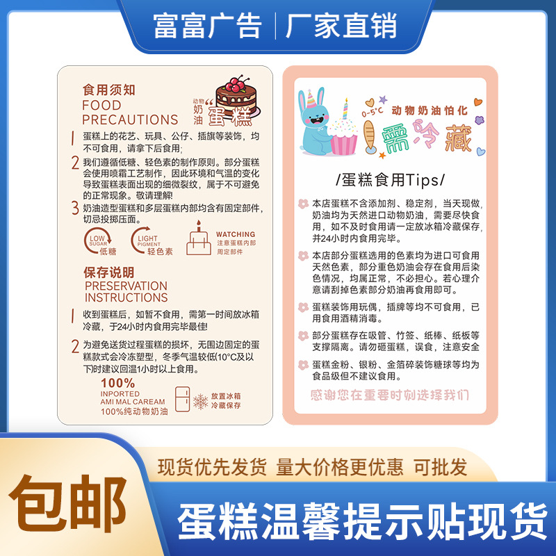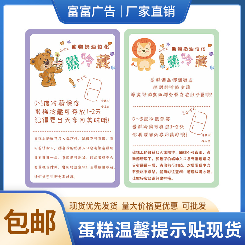 ベーキングケーキ暖かいヒントシールラベル甘い店の食用アドバイスコート紙は冷蔵しなければならない