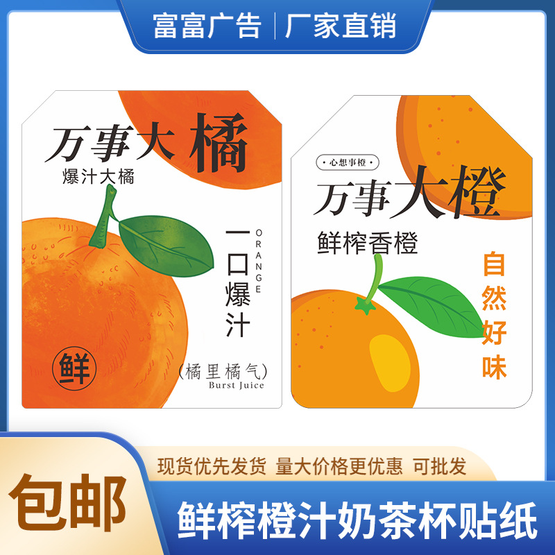 新鮮なオレンジジュースのミルクティーのカップは万事の大きいオレンジの風を貼って波を割って乾燥しないラベルの現物のシールの銅版の紙を貼ります。