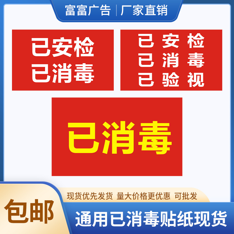 赤共通消毒済みシール不乾性現物角型安全検査済み宅配便物流ラベル郵便