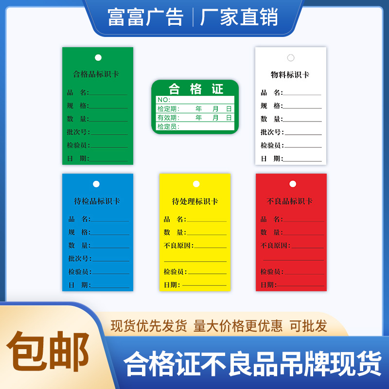 タグカードの合格証は不良品を印刷して検査待ちの資料を処理します。