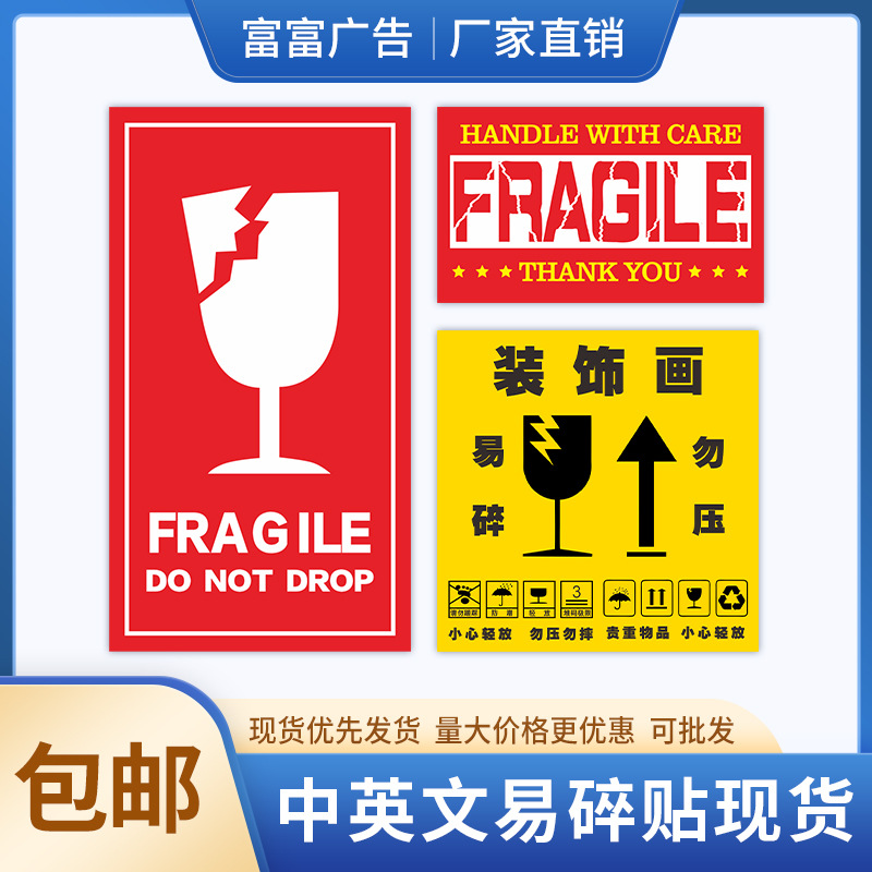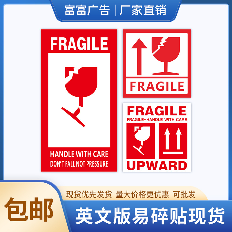 英語版の壊れやすい貼り付けスポットのステッカーラベルは、宅配便の物流警告ラベルを落としないように気をつけてください