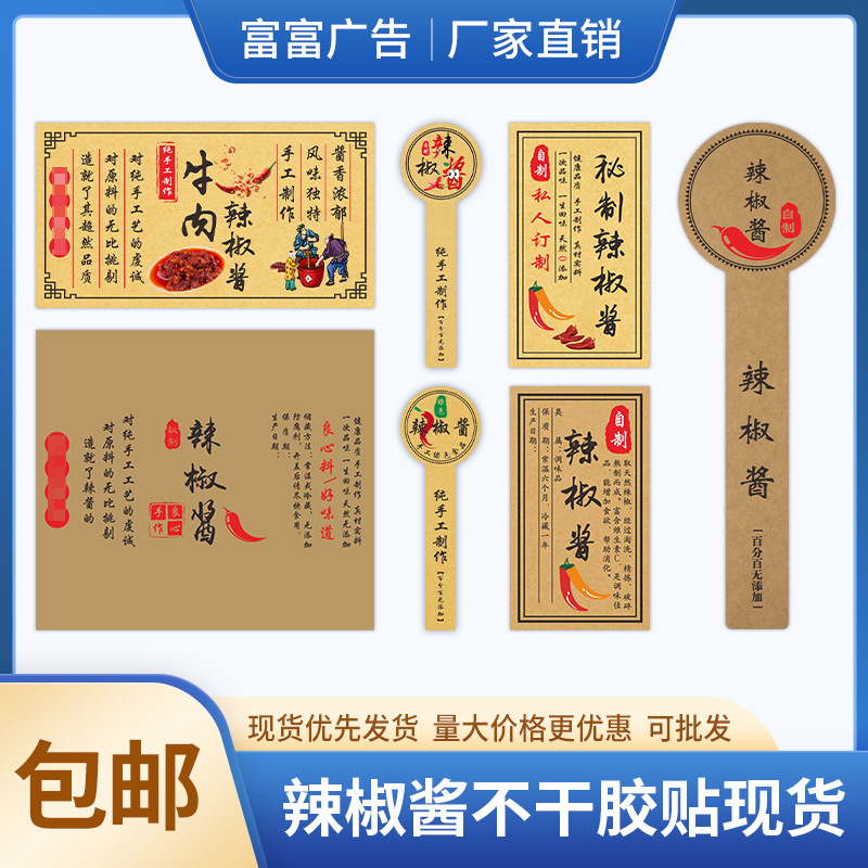 カプサイソースシール不乾性クラフト紙現物印刷純粋な手作り標識貼り共通シールボトル貼り
