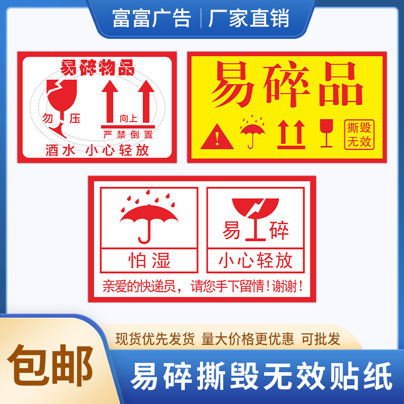 宅配便物流輸送警告語英語ラベル紙矢印上に気をつけて壊れやすい注意シール