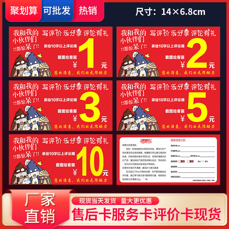 評価カードアフターサービス保障カード日焼け図共有赤包奨励カード感謝カード返品登録表現物