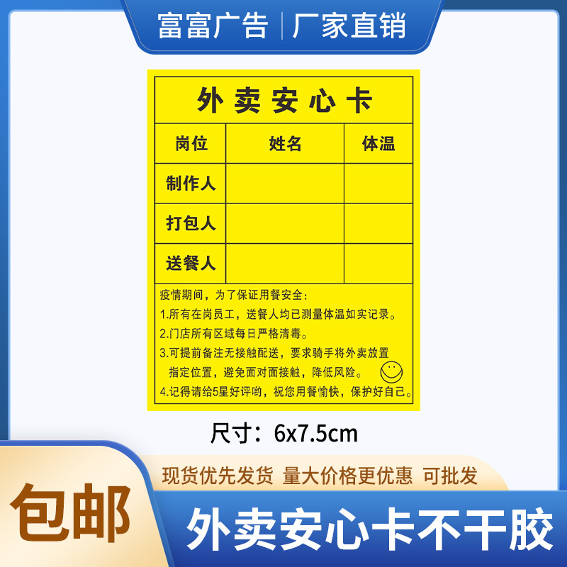 出前安心カード印刷職場体温記録配達カード銅版紙不乾性角型飲食カード