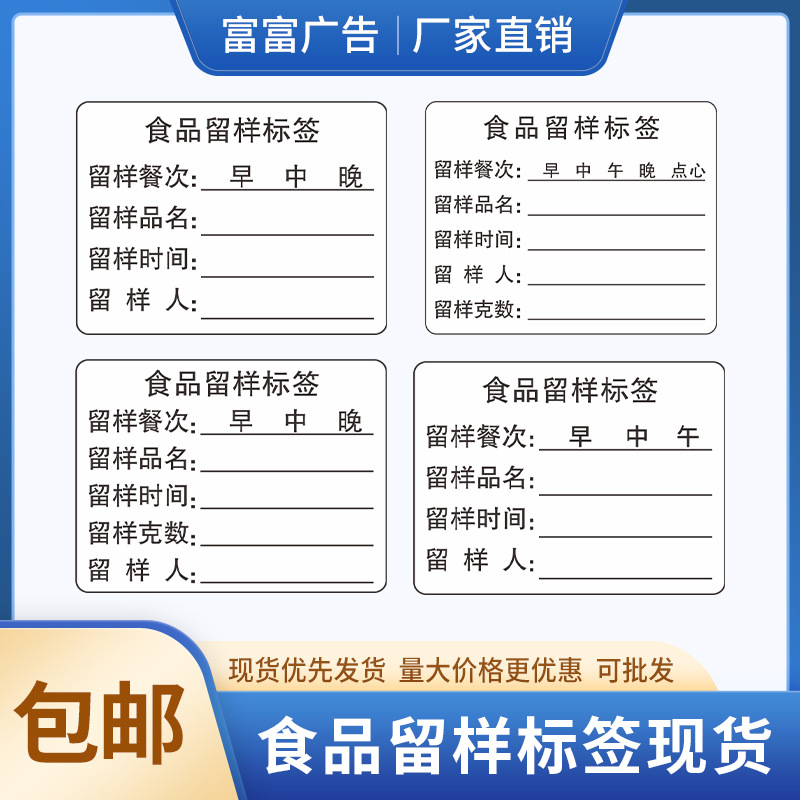 食品サンプルラベルシール学校の食堂の朝と晩のサンプリンググラム数は普通のゴムが糊を落とすことができます。
