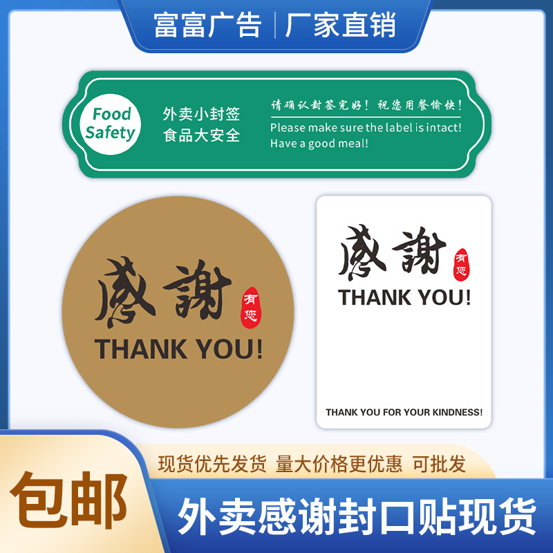 テイクアウトカードのアフターサービスシールの付箋はクラフト紙の小さいカードのアイデアの手書きのお笑いのテイクアウトの感謝状の現物を貼ります。