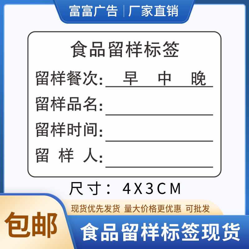 食品サンプルラベルシール学校食堂朝と晩のサンプリンググラム数普通の接着剤は接着剤を印刷しない