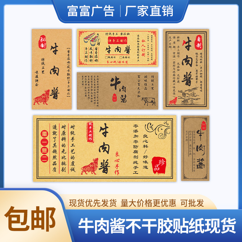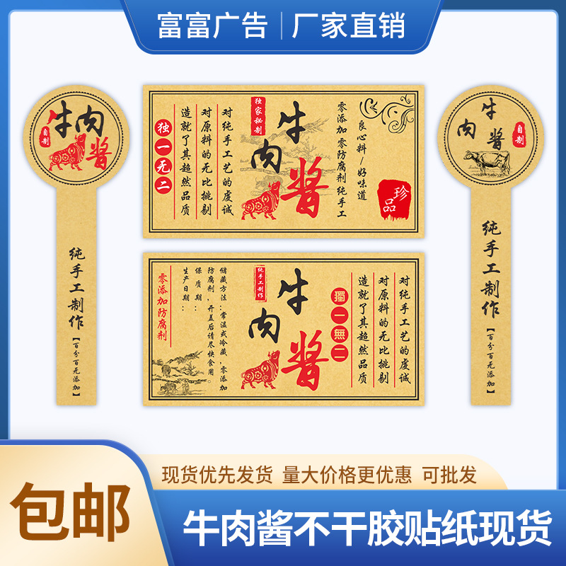 牛肉ソースシール不乾性クラフト紙印刷純粋な手作りロゴ白いコート紙を貼って郵送します