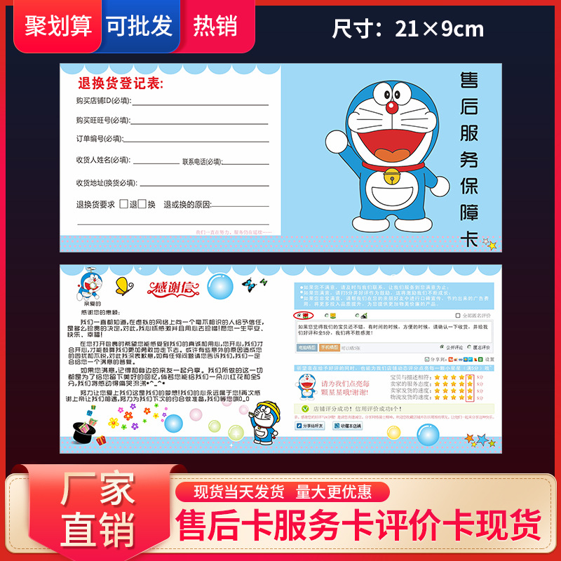 アフターサービスカードの評価日焼けカードのアフターサービスカードの返品交換カードの感謝状印刷メーカーのドラえもんの現物