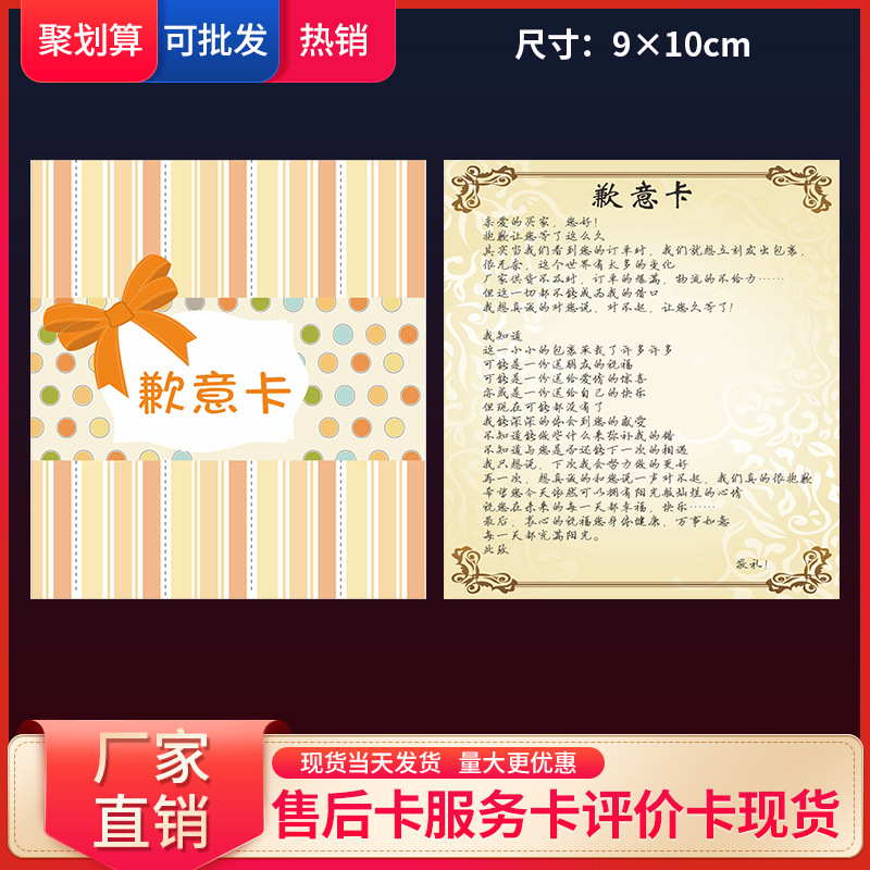 宅配カード五星評価カード好評アフターサービスカードシンプルカード印刷美団空腹金色謝罪カード
