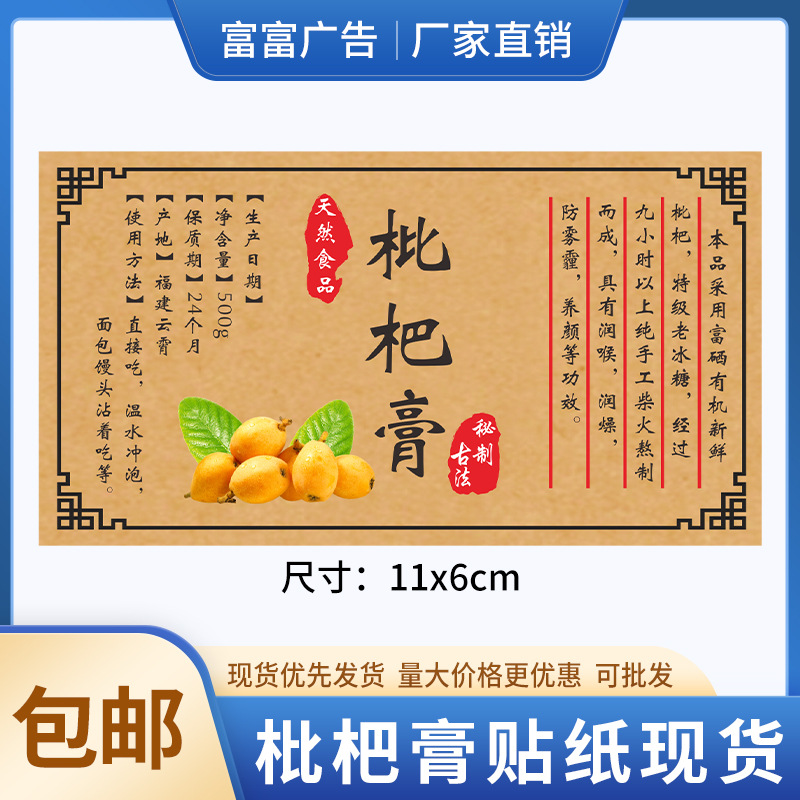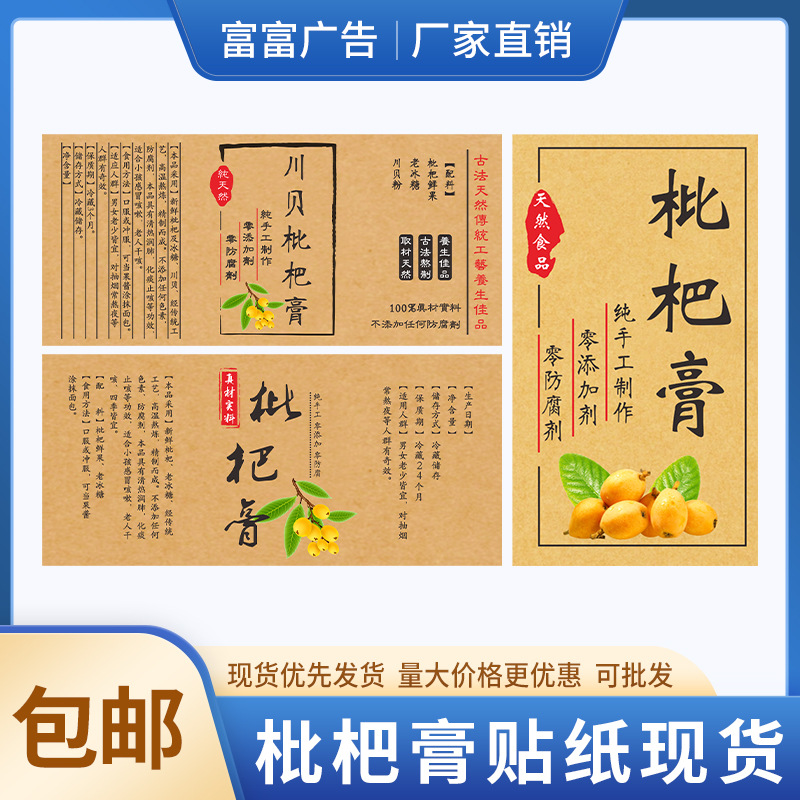 メーカー印刷食品カラー不乾性ビワ膏ラベル不乾性印刷シール瓶に二次元コードシールを貼る