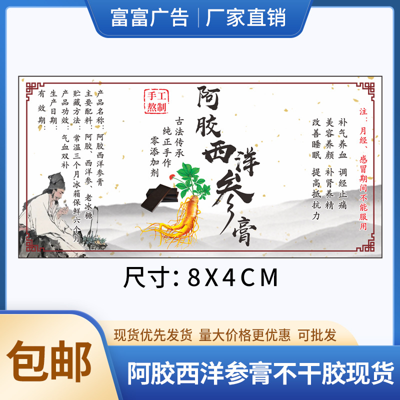 阿膠餅ステッカーラベル純手作り西洋参味固体クリーム包装箱説明書ラベル66
