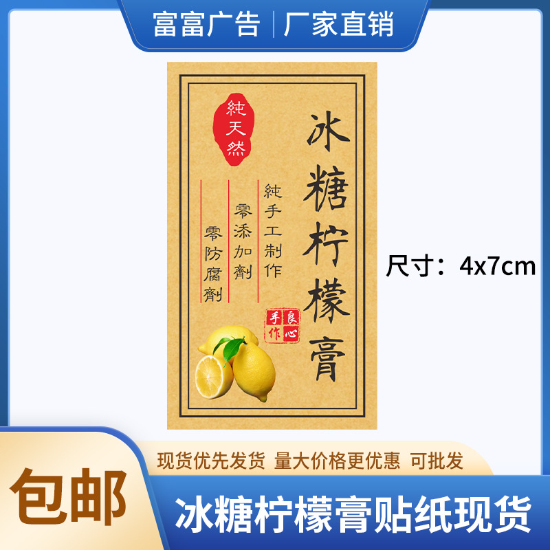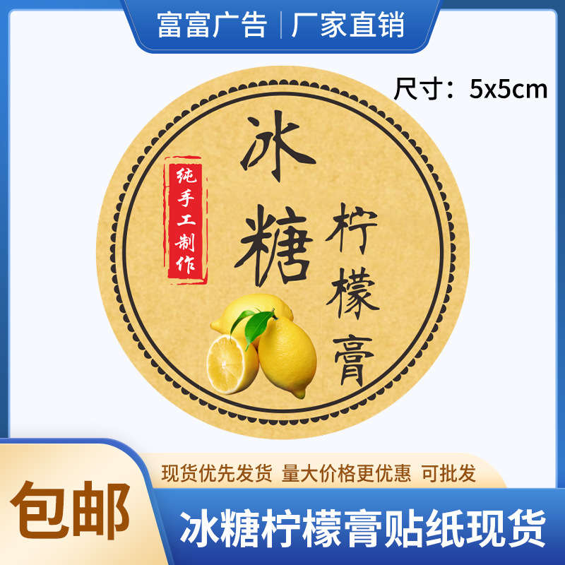 ステッカー透明PV防水シール二次元コードラベルリールクラフト紙商標印刷氷糖レモンペースト