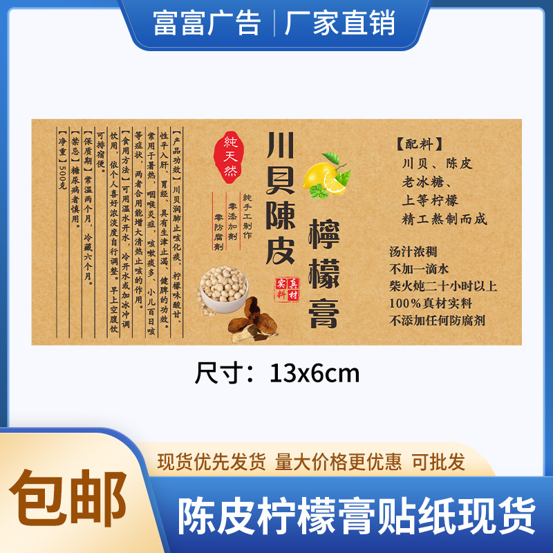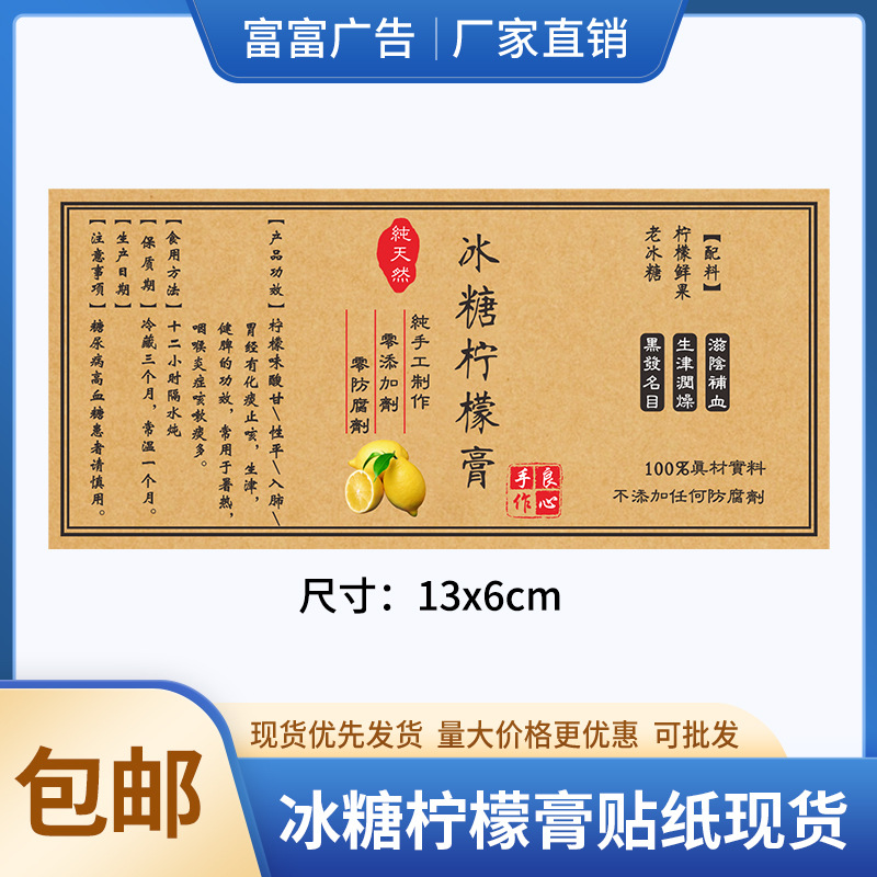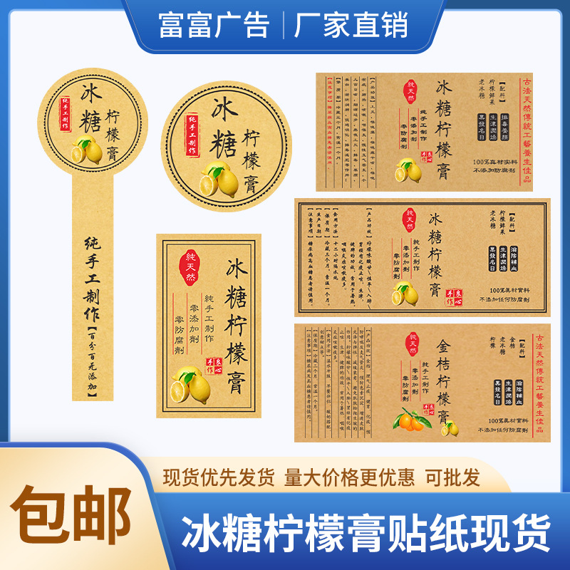 ボトルに二次元コードラベルを貼ってレトロなクラフト紙のステッカーナッツ茶葉シールを印刷して氷糖レモンペーストを印刷する