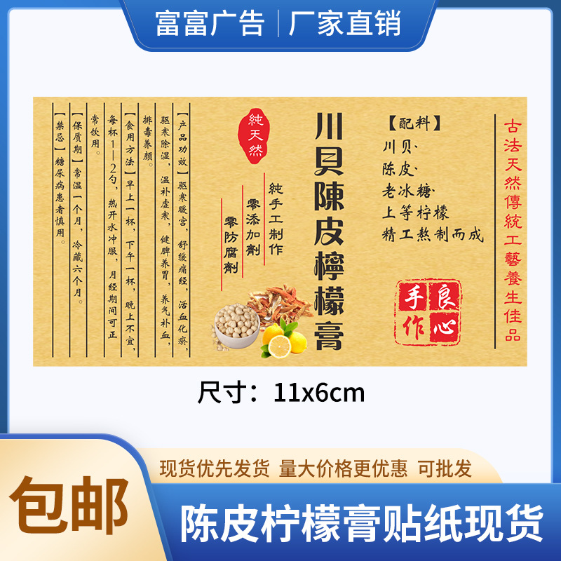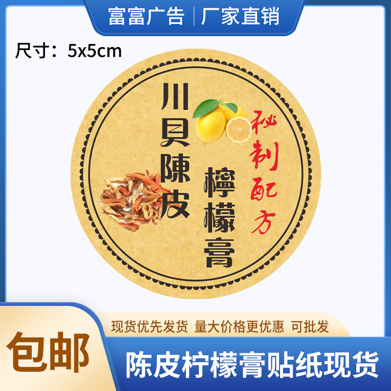 美紋不乾性円形散金シール茶葉商標特殊紙ギフト印刷ラベル陳皮レモンペースト