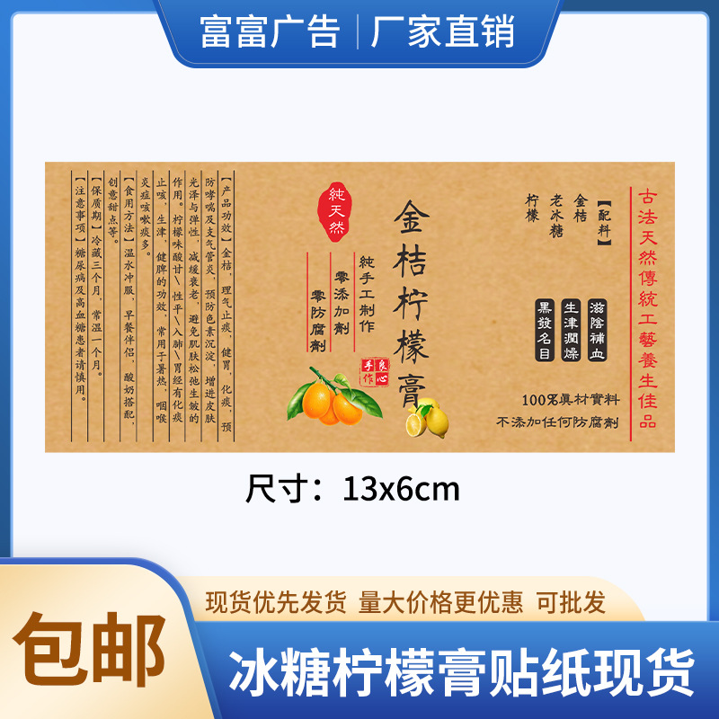現物200枚手作り食品標識貼りクラフト紙印刷カプサイソース豆弁醤バックシールラベル貼り