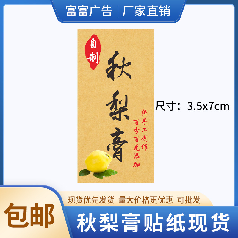 秋梨膏シール販売ミルクティーカップシールデジタル印刷カラー小ステッカー商標ロゴラベル