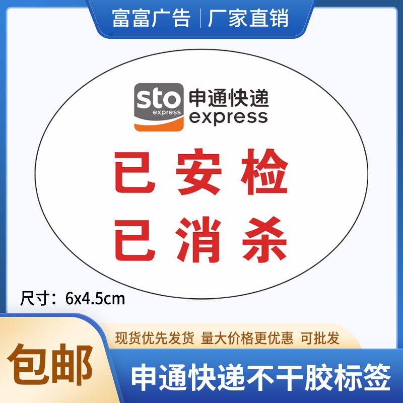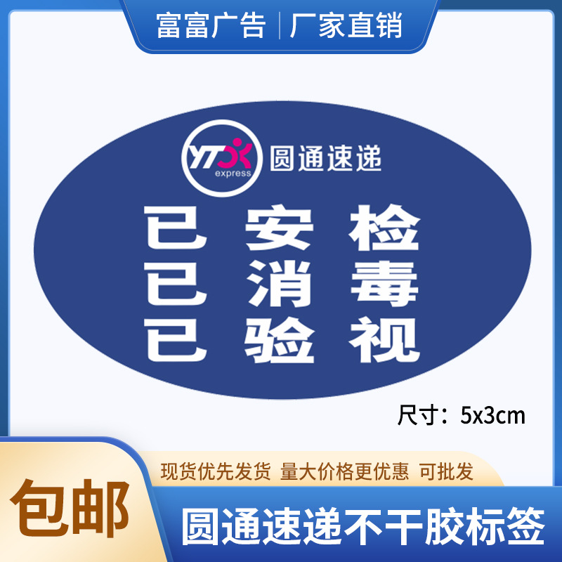 円通速達はすでに安全検査消毒検査ラベルを印刷していない白い字の黄色い字の丸い標識を1000枚貼っている