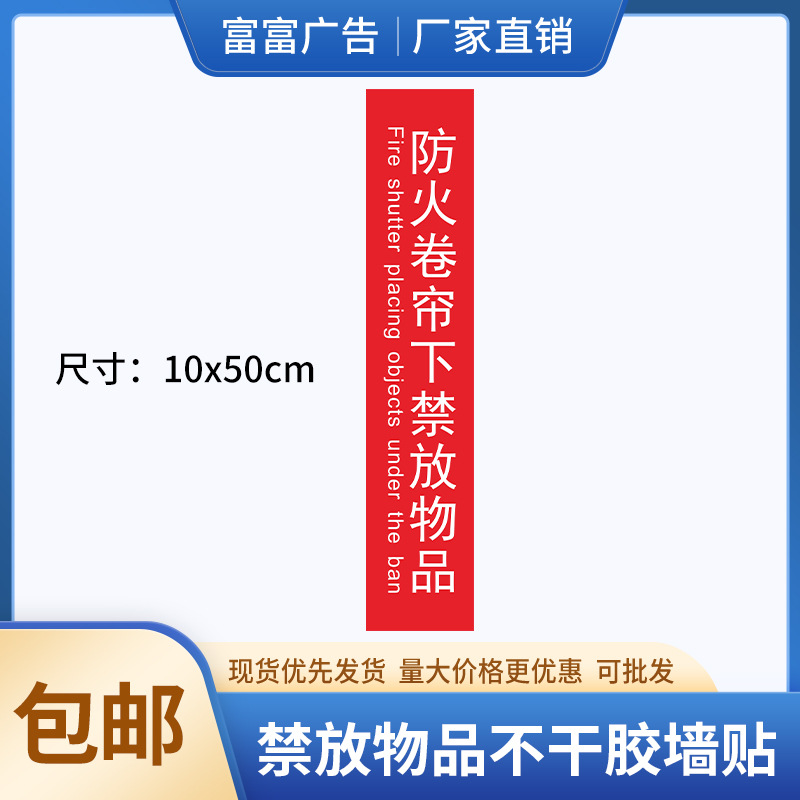 ロールカーテンの下に物を置く禁止のステッカーの壁にスポット倉庫消防安全暖かいヒントシールラベルを5枚貼った