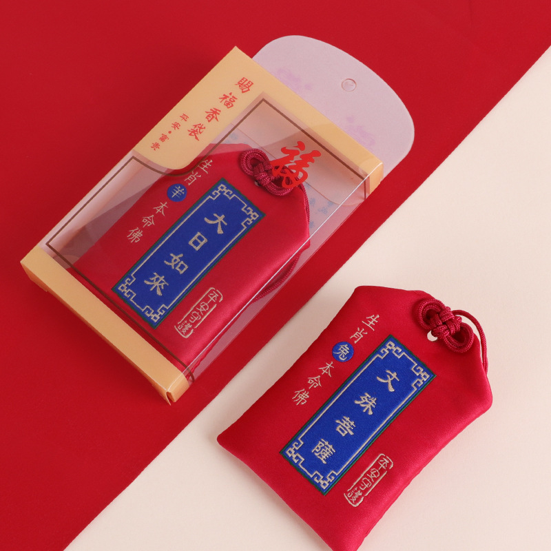 普陀山干支福袋、ポータブル金袋、祝福守護袋、中国風干支柄金福袋