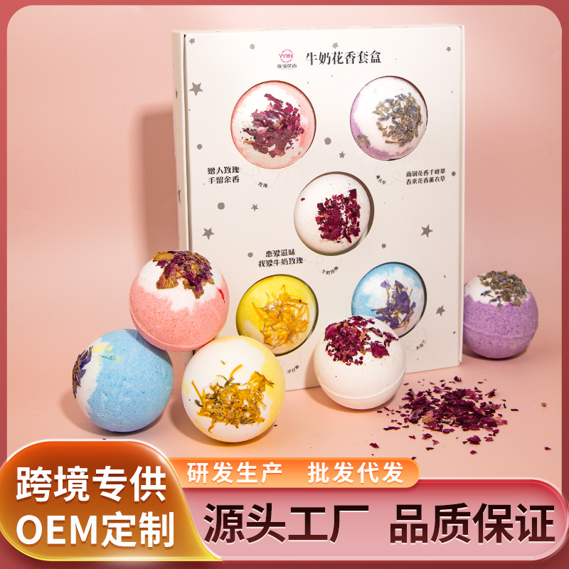 ドライフラワー爆発バス塩ボール100gギフトボックス5個入り精油アロマ気泡弾スポット卸売りバスボールセット