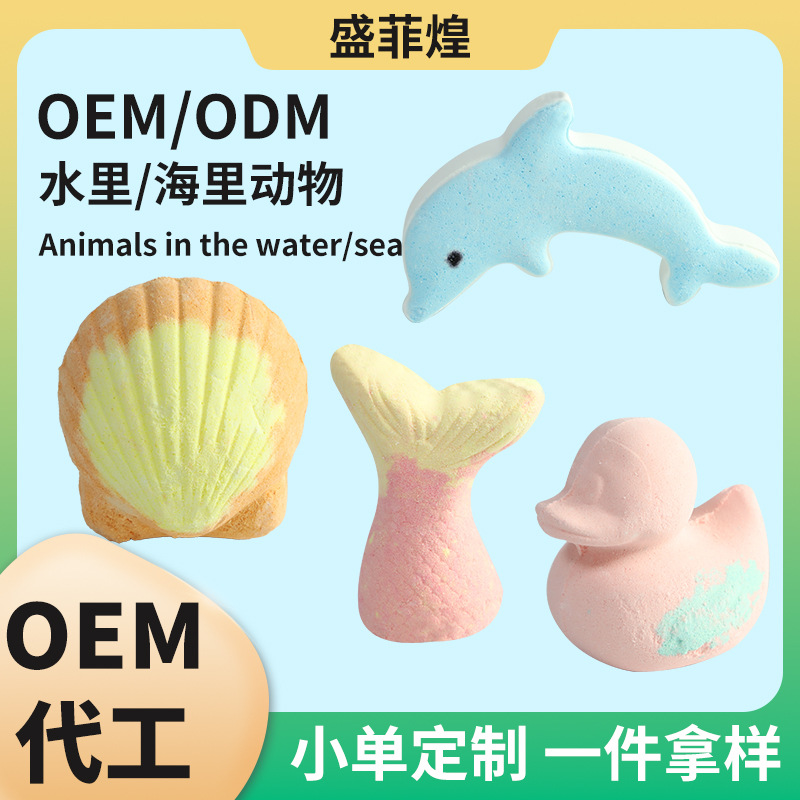 OEM加工カスタマイズ動物バスボール海洋おもちゃ特殊形状シェルバスソルトエッセンシャルオイルバスソルトボールカスタマイズ