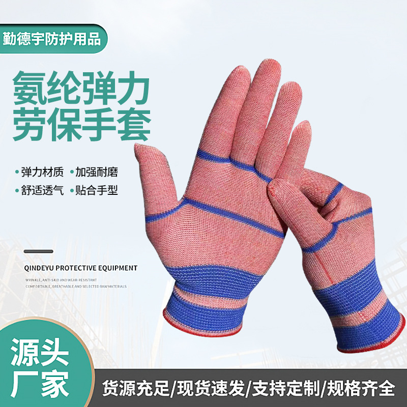 スパンデックス弾性手袋コアカラーナイロン手袋通気性ハンドフィットソフト快適な耐摩耗性建設現場作業手袋