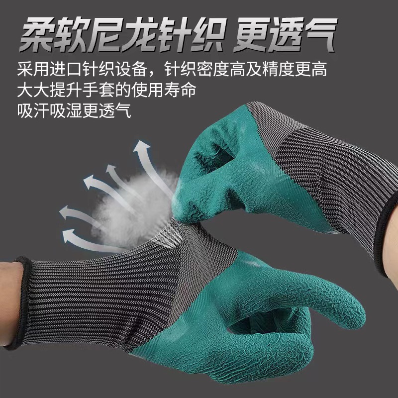 園芸手袋防水防止グリーン掘削砂掘削ラテックス発泡通気柔らかい快適園林防護手袋