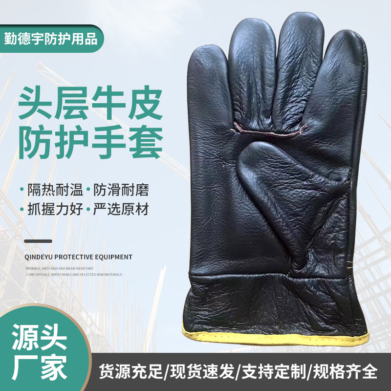 暗色分背ショートタイプのトップ牛革手袋トラック運転手電気溶接物流埠頭港断熱防護手袋