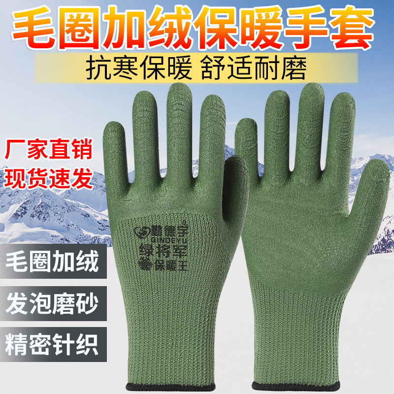 冬の毛輪にベルベットの厚い耐寒性保温労働保護手袋ゴム発泡滑り止め耐久性建築現場専用