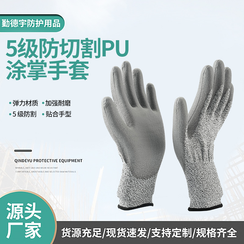 レベル 5 耐切断性 PU コーティングされた手のひら手袋、ガラス切断、魚屠殺場の労働者、耐穿刺性、耐摩耗性労働保護手袋