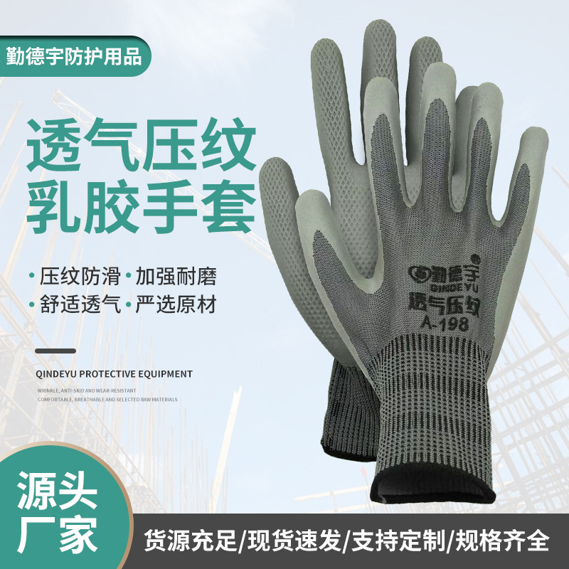 通気性物理エンボスラテックス労働手袋耐摩耗性快適滑り止め建築現場工場操作防護手袋