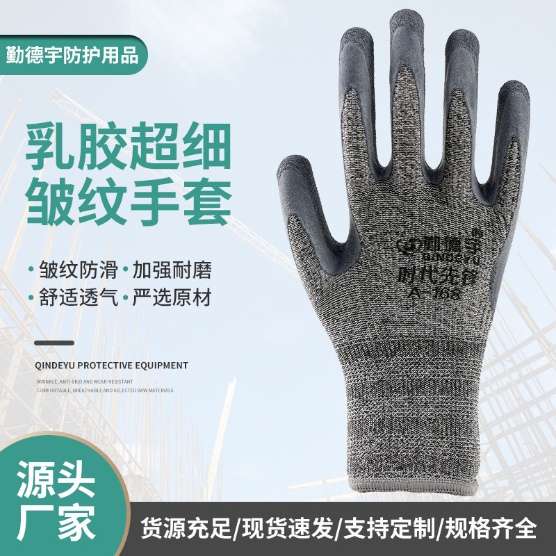 ラテックス超細いしわ耐摩耗性労働保護手袋滑り止め通気性工場防護手袋建築労働保護手袋