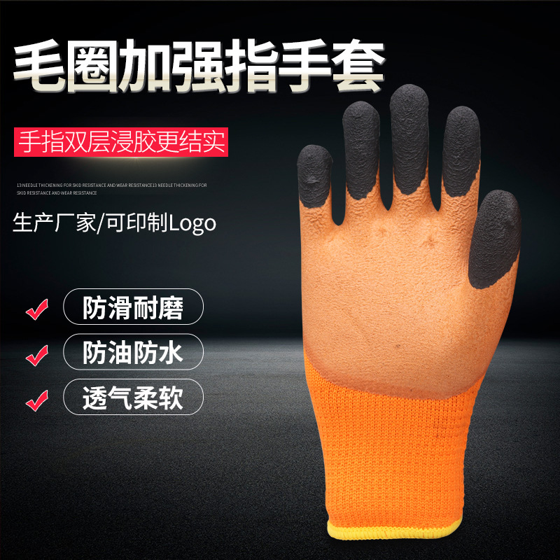 ラテックス手袋冬は保温滑り止め耐摩耗性毛輪圧紋手袋労働保護手袋山東メーカー直販