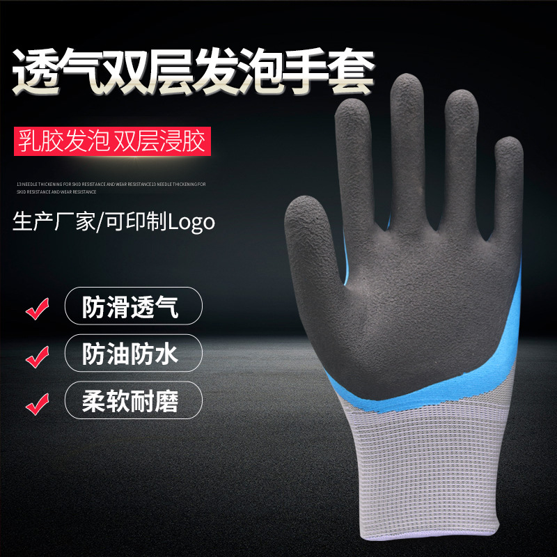 13針通気二重発泡手袋卸売りラテックス手袋滑り止め耐摩耗防油機械防護労働保護手袋