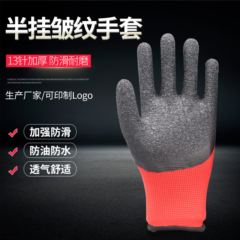 労働保護手袋ラテックスしわ半掛手袋卸売建築工事現場用滑り止め耐摩耗防護手袋
