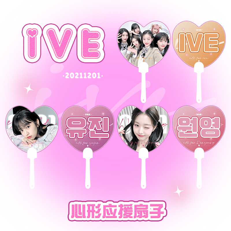 IVE ハート型扇子サポート周辺機器張元英安真と同じスタイルのサマーギフト共同サポートアイテム