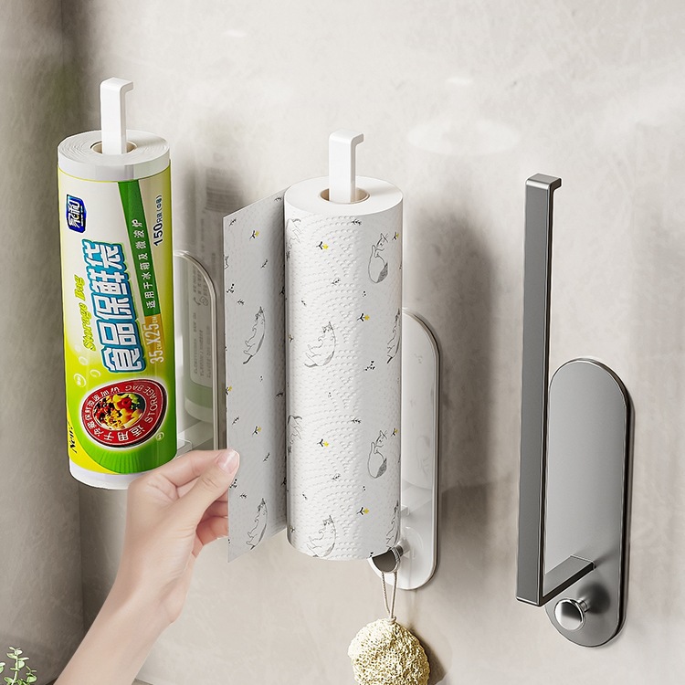 キッチンペーパータオルホルダー、パンチング不要、キャビネットペーパー収納ロールホルダー、ラップフィルム油吸収紙収納ラック