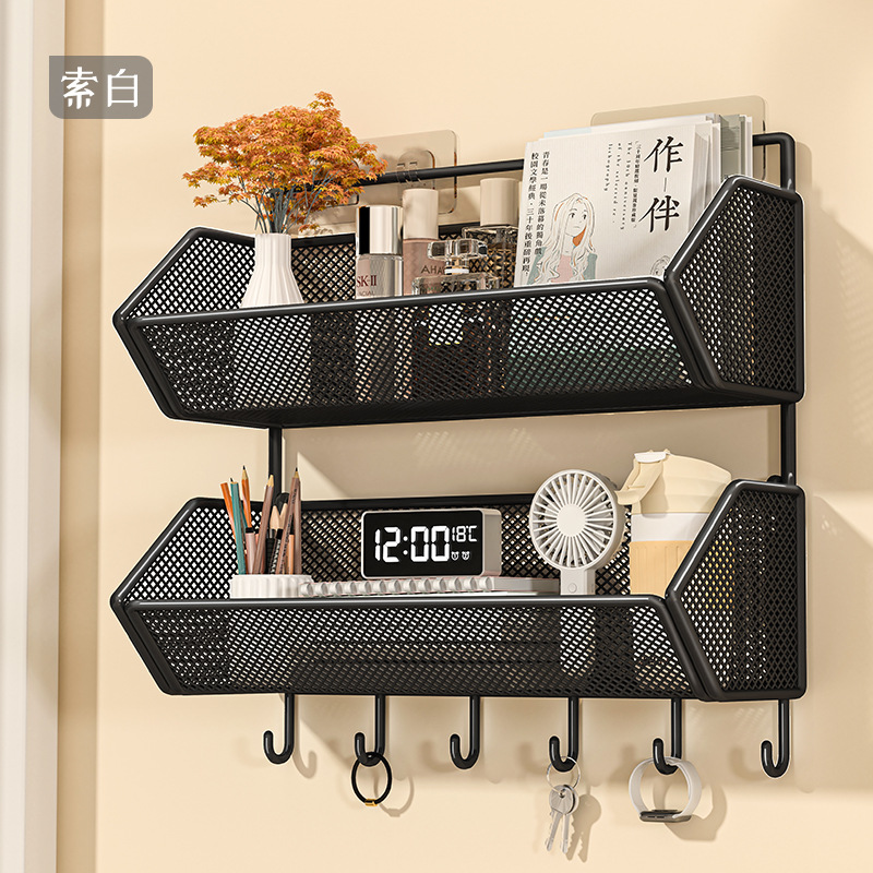 壁掛け収納ラック、パンチングなし、学生寮のベッドの上段、寮の壁掛けバスケット、寝室の収納ラック