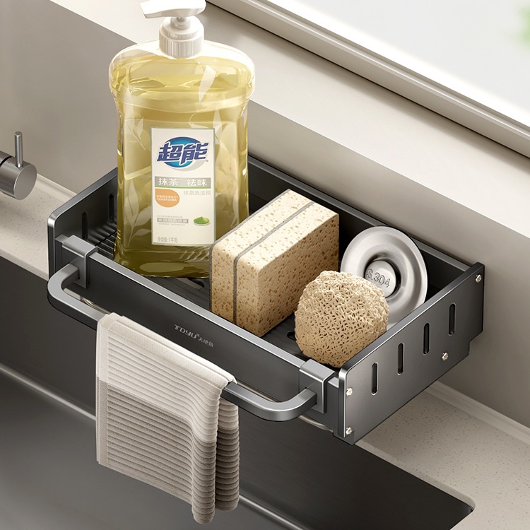 キッチンラック、雑巾ラック、パンチフリー壁掛け家庭用スパイスラック、排水バスケット、シンク収納ラック