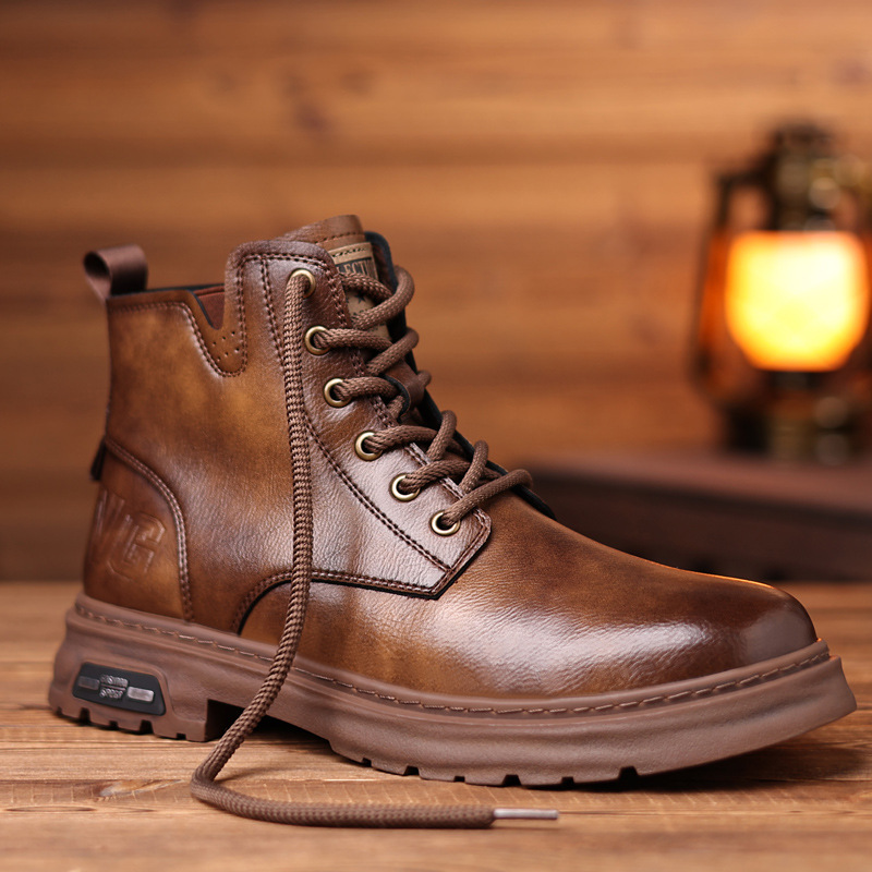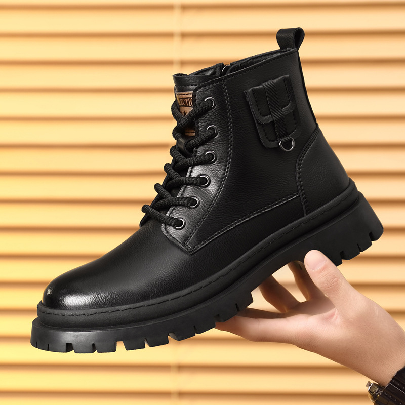 2023新型マーティンブーツ男牛切断層皮革内ファスナーひもゴム靴底上線工場代件