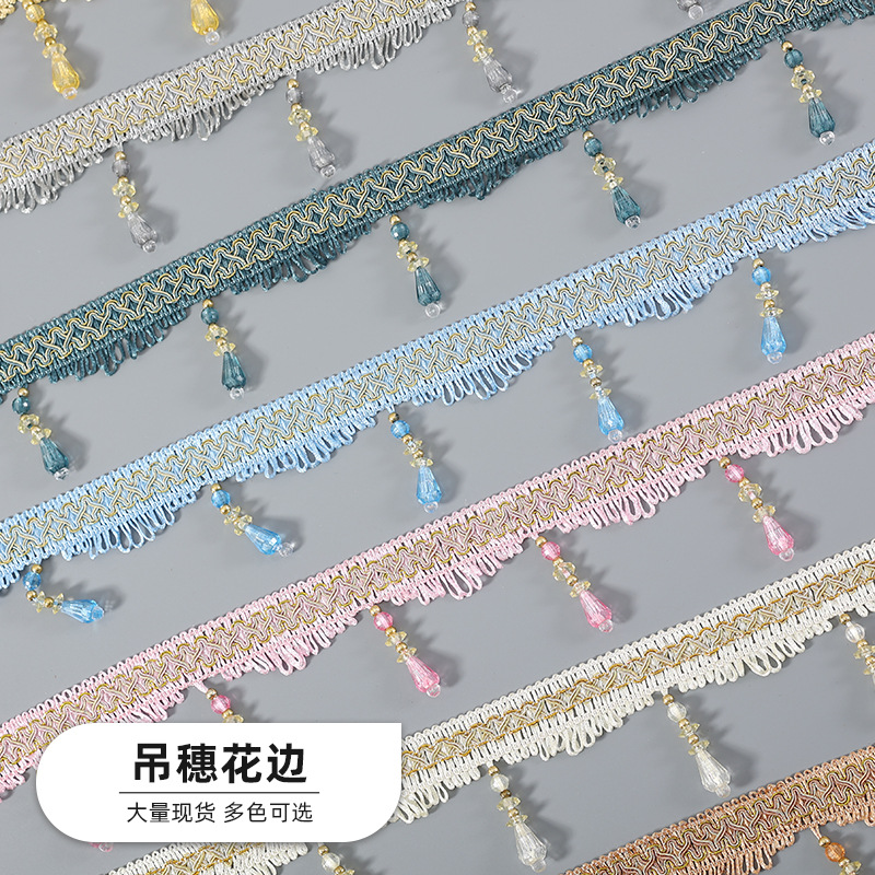新しい中国風カーテン、ウェディングタッセルカーテンヘッド、枕、ドアカーテン、トラックガラス吊りタッセルカーテンヘッド、パールダブル吊りタッセルビーズ