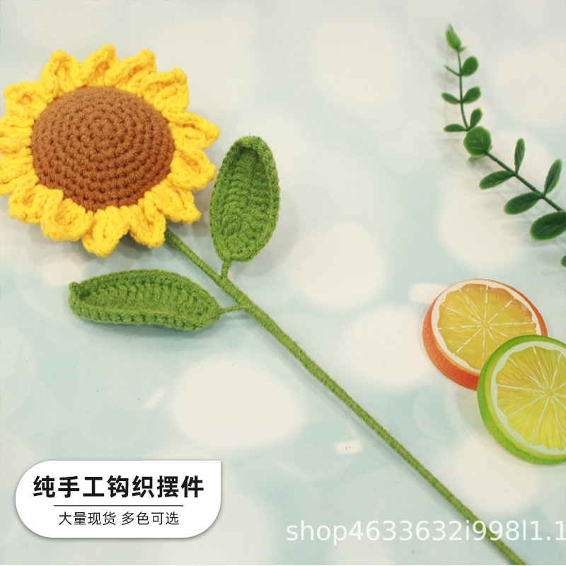 手作りのひまわりを編んで卒業する花束の入学式の贈り物の配置は牛乳の綿糸の漫画の植物の装飾を並べます。