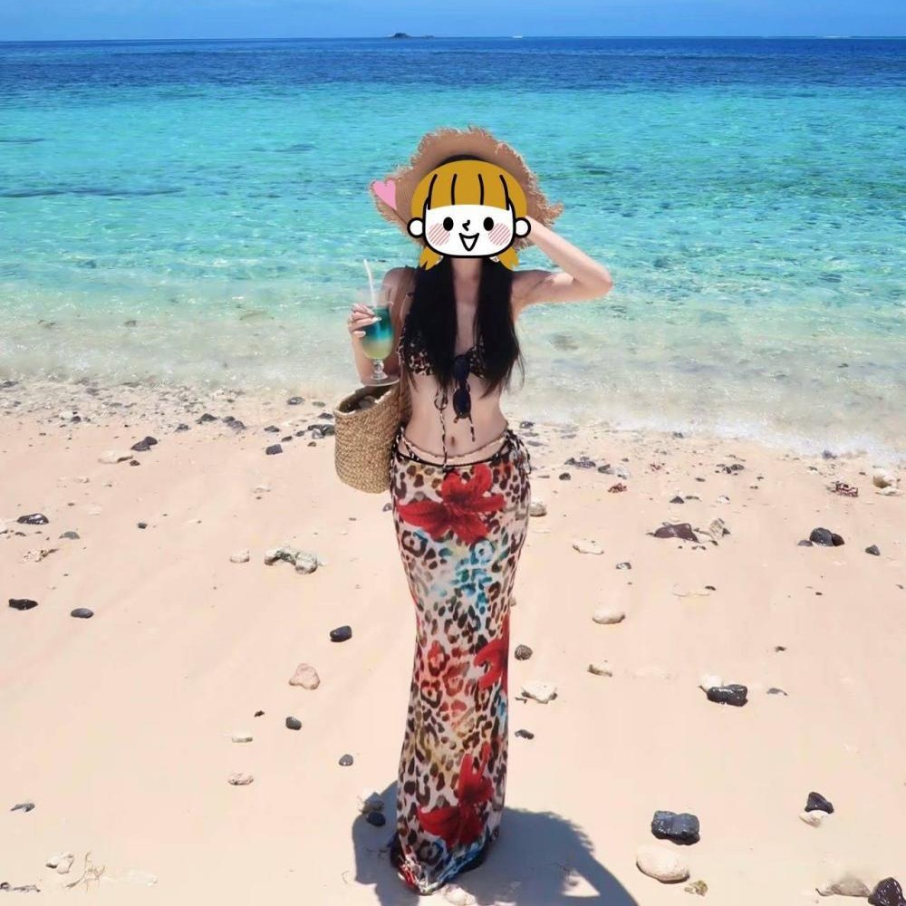 水着女性の海辺の休暇スーツロングスカートスーパーフェアリーホルターネックタイプリントサスペンダーバックレスビキニセクシーな水着
