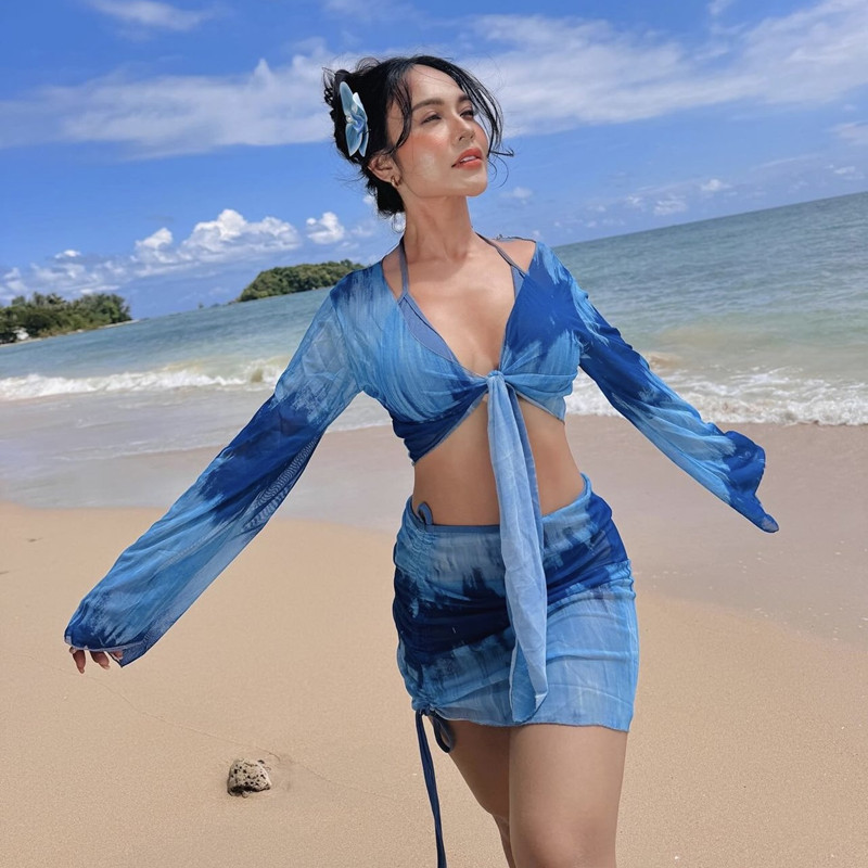 ビキニ三点セット新型保守長袖着痩せ水着女性高級感分体純欲温泉少女水着
