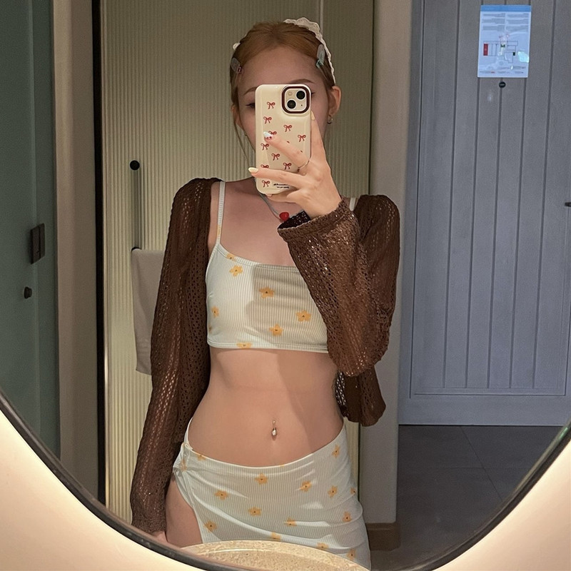 2024新型超仙砕花水着女性韓国のお腹を隠して痩せて見えるスカート式三角分体小胸温泉水着