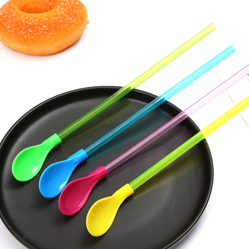卸売り食品級無味取り外し可能なカラープラスチックスプーンストローアイスクリームデザートクリエイティブプラスチックストロースプーン